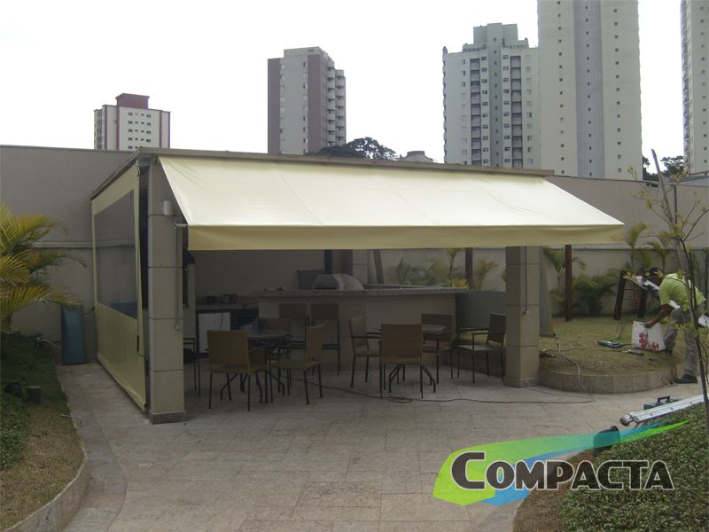Porém, um toldo deve ficar sempre levemente inclinado, para que haja circulação de ar sobre ele, e o ambiente protegido não fique abafado e escuro.